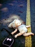 LHS: I believe my best pictures are yet to be made, I have three pictures that are special to me. They combine my quest for thoughtfulness with a critical or “decisive moment” in the picture-making process. For example, “As A Roaring Lion” was taken in Long Beach, California. I saw doll parts in an abandoned storefront window. Using a 24mm lens, I positioned myself to get a good composition. I made several pictures. Suddenly, a cat appeared in the frame. I made one picture. It was at the critical moment. His paw had a slight motion toward the doll heads. The image had tension, a sense of pending danger. The cat was the predator. The dolls were the prey. I used a scripture from 1 Peter 5:8 as the caption. “Be sober, be vigilant; because your adversary the devil, as a roaring lion, walked about, seeking whom he may devour.” In 1982, I was doing New York City street photography. I was beginning my work on urban billboards. At a construction site at 14th Street and Union Square I saw a poster that appeared to be a man from the Neolithic age. The light streaming through the scaffolding made a diagonal line toward the street. I patiently waited for the right moment. A man walked through the frame. Bam! I made the image. I knew it was the frame I was waiting for. A day later, I got the chrome back from the lab. I was not disappointed. It was an exciting Twilight Zone moment.